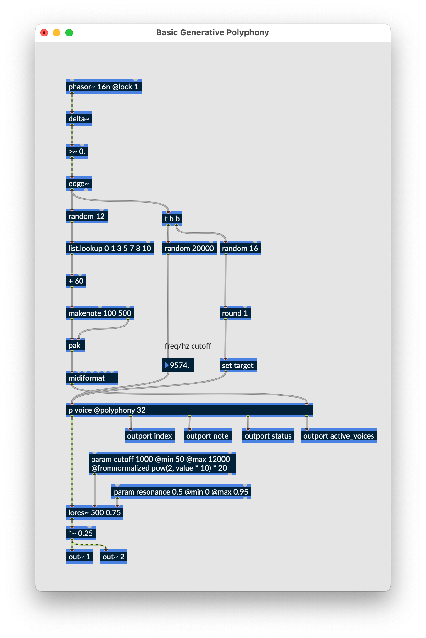We'll start by exporting the following patcher to the Raspberry Pi target: